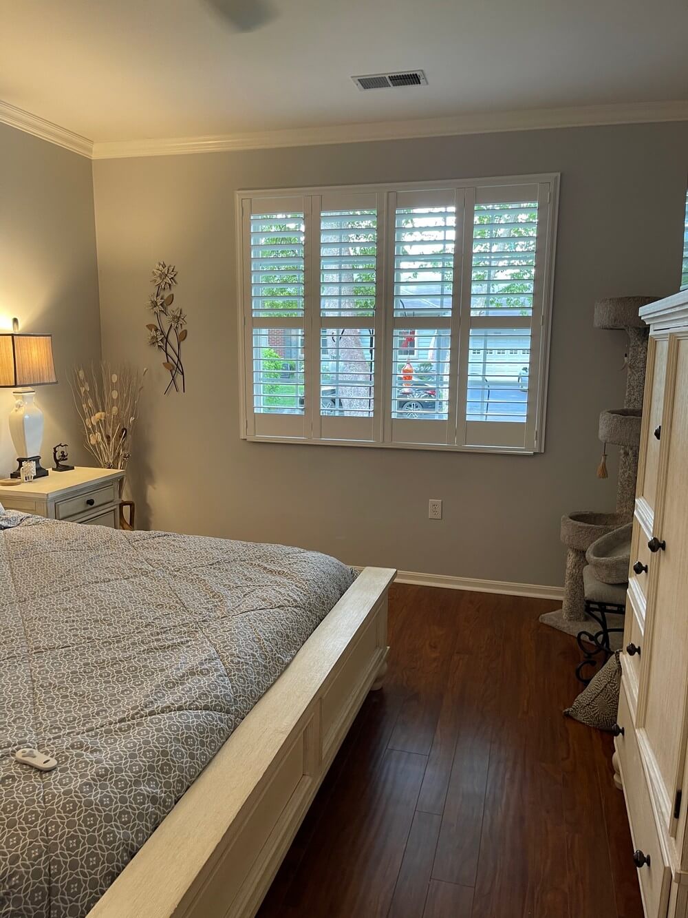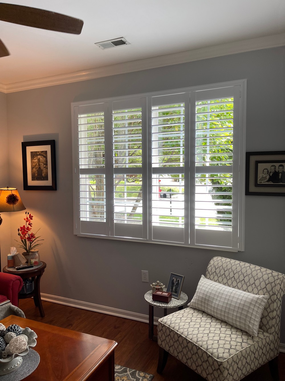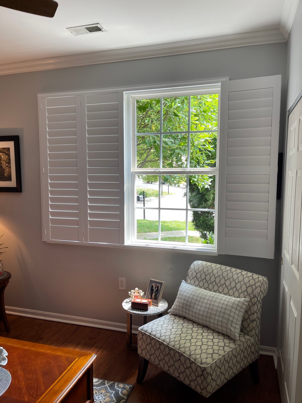 We completed the professional installation of custom bi-fold plantation shutters for a residential client in Merton Square, Louisville, KY (Jefferson County). This bi-fold system was the strategic choice for a large window area, allowing panels to fold neatly for full window access. The project successfully accomplished the homeowner's goal of achieving elegant, adjustable light control while providing a durable, high-value, and long-term investment in their home's aesthetics.
